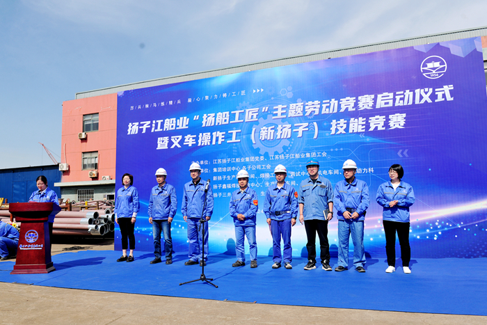 4月24日,揚子江船業(yè)“揚船工匠”主題勞動競賽啟動儀式暨叉車操作工(新?lián)P子)技能競賽在新?lián)P子造船舉行。集團副總經(jīng)理兼新?lián)P子造船總經(jīng)理杜成忠,新?lián)P子造船副總經(jīng)理倪榮,新?lián)P子造船總經(jīng)理助理茆宏兆,揚子鑫福造船總經(jīng)理助理劉銀君,集團技術(shù)中心技術(shù)部部長蔣才平,新?lián)P子質(zhì)量管理部部長唐松,揚子鑫福造船工會主席陳紅,揚子三井造船工會主席司凌鈺,以及各造船子公司相關(guān)承辦車間部門領導、參賽職工代表和裁判員代表等參加啟動儀式。