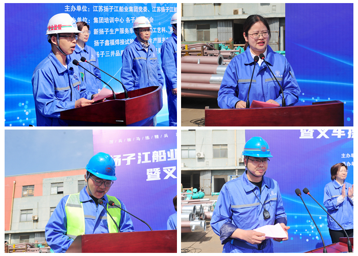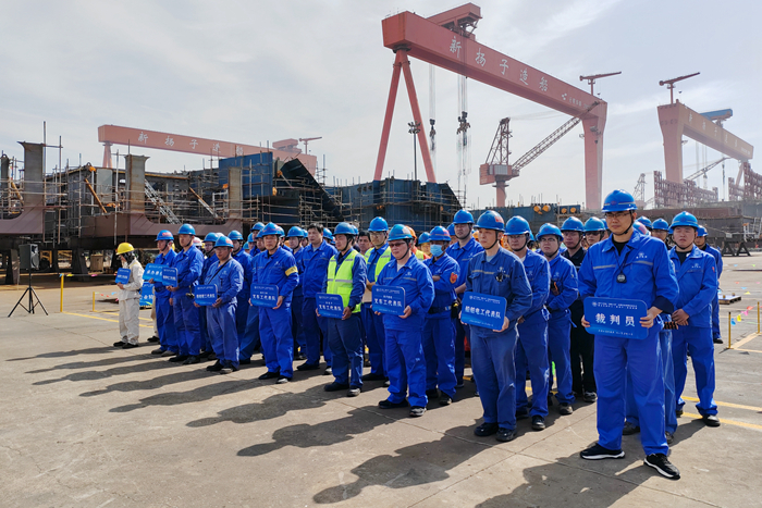 啟動儀式上,新?lián)P子造船副總經(jīng)理倪榮代表公司作致辭;新?lián)P子造船工會主席周黎黎代表組委會宣讀了本次勞動競賽方案和競賽考評細則;員工代表朱楠作承諾發(fā)言;裁判代表李勁松宣誓發(fā)言。集團副總經(jīng)理兼新?lián)P子造船總經(jīng)理杜成忠宣布勞動競賽啟動。