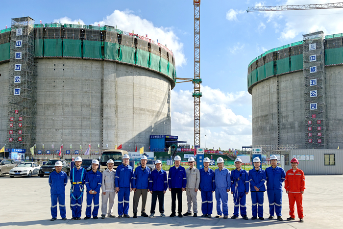 該項(xiàng)目單臺LNG儲(chǔ)罐拱頂重量達(dá)463噸,氣壓頂升作業(yè)屬超過一定規(guī)模的危險(xiǎn)性較大的分部分項(xiàng)工程,技術(shù)難度與風(fēng)險(xiǎn)管控要求極高。集團(tuán)統(tǒng)籌資源,聯(lián)合中國五環(huán)工程有限公司、中國核工業(yè)第五建設(shè)有限公司,通過對氣頂升五大核心系統(tǒng)聯(lián)合檢查驗(yàn)收和全流程精準(zhǔn)調(diào)控,最終實(shí)現(xiàn)拱頂安全平穩(wěn)就位,充分體現(xiàn)了集團(tuán)在大型能源基礎(chǔ)設(shè)施建設(shè)領(lǐng)域的專業(yè)化管理能力和"造船+"管理體系優(yōu)勢。