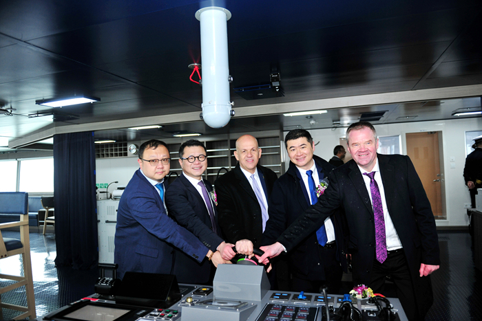 20241210日上午,我集團(tuán)與SEASPAN、以星航運(yùn)共同為本船舉行了隆重的命名儀式。命名人Dimpple Rana女士,以星航運(yùn)中國(guó)總裁華向前先生,SEASPAN公司資產(chǎn)管理部項(xiàng)目經(jīng)理蘇小華先生,DNV船級(jí)社中國(guó)北方區(qū)總經(jīng)理晏曉琳女士,以及我集團(tuán)副總經(jīng)理兼新?lián)P子造船總經(jīng)理杜成忠先生、集團(tuán)副總經(jīng)理吉宏飛先生、新?lián)P子造船副總經(jīng)理倪榮先生等領(lǐng)導(dǎo)和嘉賓共同出席了命名儀式。Dimpple Rana女士將新船命名為ZIM AQUAMARINE”輪,為新船砍纜、擲香檳禮并與嘉賓們登船參觀。汽笛鳴響,祝福新船以及隨船船員航行平安,為船東和租家?guī)?lái)榮譽(yù)和財(cái)富。