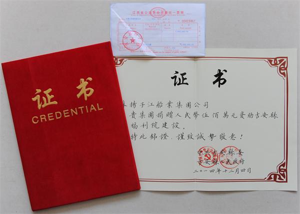 12月4日,江蘇揚子江船業(yè)集團公司向江西吉安縣捐贈人民幣五百萬元,專項用于吉安縣社會福利院建設(shè)。