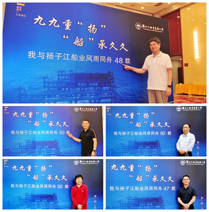 On October 14th the Double Ninth Festival, representatives of retired veteran cadres of Jiangyin Transportation Bureau, retired veteran cadres of YZJ and veteran experts gathered together to participate in the theme of "Double ninth festival “l(fā)ongevity” Shipbuilding inheritance for a long time" double Ninth Festival activities. Everyone talked together and spent a happy and warm holiday together. Honorary Chairman Ren Yuanlin,Chairman Ren Letian and other leaders of the Group participated in the activity.