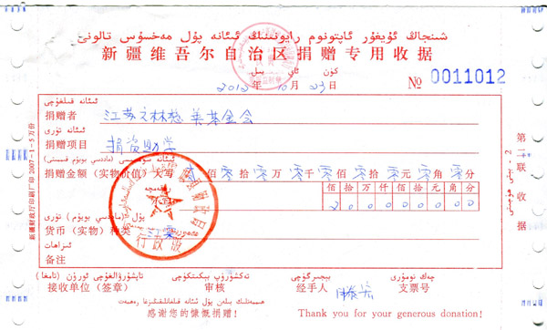 On October 23th, 2012, Jiangsu Yangzijiang Shipbuilding Group Ltd. sponsored RMB 2 million to the Xikazi school in Qingshuihe Town , Huocheng County, Xinjiang Province.